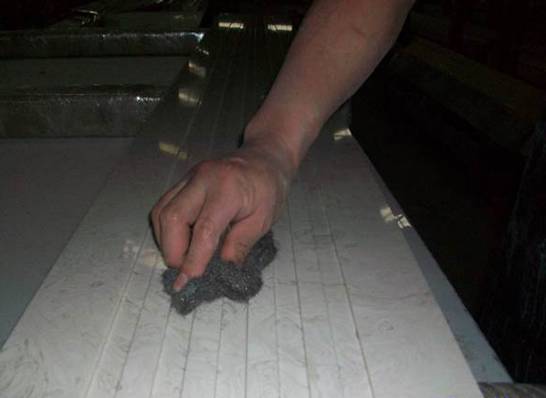2 使用0#鋼絲棉擦拭石線表面,直到表面光亮。