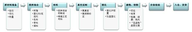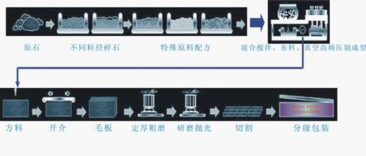 無機人造石可稱為無機崗石,是以無機膠粘劑結合骨料、填料制成的人造石,填料可以是石英石、花崗巖、長石和大理石等,其生產工藝流程與人造石基本一致,可采用壓荒料法或壓板法生產。