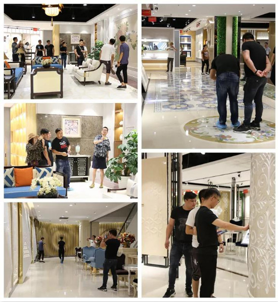 上午九點半,設計師們來到總部展廳參觀,在公司專業人員的帶領下,詳細了解了石材的裝飾效果,不禁對石材的工藝發出贊嘆,紛紛拿出手機記錄下這些美輪美奐的作品。