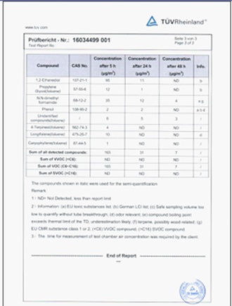 經世界三大頂級檢測機構之一德國萊茵TUV的檢測,證明不含甲醛、苯、甲苯、二甲苯。附德國萊茵TUV的檢測報告。