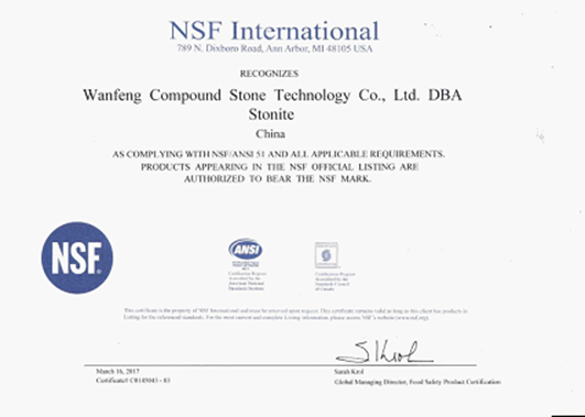 在食品級接觸檢測上,我司產品經德國萊茵TUV的檢測和美國NSF檢測,符合家具產品與食物直接接觸的要求。