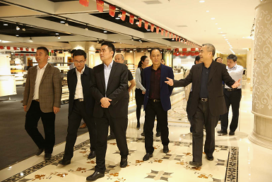 3月24日,中共高安市委書記袁和庚、高安市政府副市長況學成、高安市高新技術產業園黨委書記兼省建筑衛生陶瓷質量監督檢驗中心主任胡江峰、高安市環保局局長劉愛國、高安市國稅局局長羅振興、省建陶基地管委會黨委書記席永春、高安市大城鎮鎮長孫德剛來到萬峰石材展廳,新中源集團董事局主席霍熾昌、加利申集團董事馮顯蔭、新中源集團副總裁郭光輝、廣東省地產商會副會長顏清及萬峰石材科技股份有限公司總經理林志偉共同迎接他們的到來,并表示熱烈歡迎。