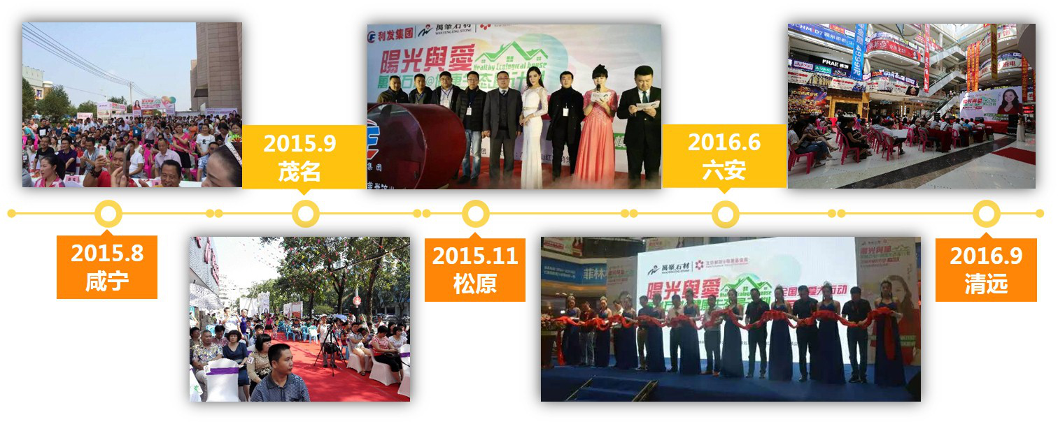 2015年萬峰石材推出的 “陽光與愛”健康生態(tài)屋計劃,在石材行業(yè)中首次把“慈善”和“關(guān)注家居健康”兩者相結(jié)合,在全國范圍內(nèi)推廣綠色環(huán)保家居概念,號召廣大消費(fèi)者關(guān)注環(huán)保家居和健康生活。第一批健康生態(tài)屋計劃活動已于2016年9月在全國陸續(xù)成功落地了。