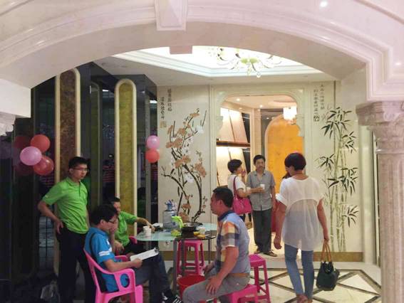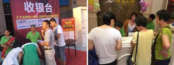 活動當天,即使天公不作美,下起了連綿大雨,業主們的熱情仍不見絲毫減退。現場吸引了近600名業主踴躍參與。本次活動,石材三明旗艦店推出了多款精品背景墻套餐、分高端大氣,小資情調、簡約時尚三個組合,優惠的價格掀起了一波波搶購狂潮,更有10家霸氣業主現場下單!