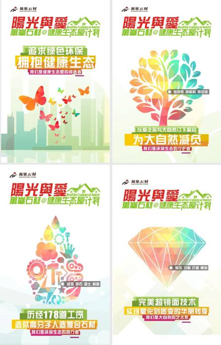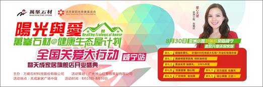 在咸寧活動門店,不論是室內還是戶外,隨處可見“石材@健康生態屋計劃”咸寧站的宣傳信息“關注健康家居生活,傳遞陽光與愛”,相信這充滿著“陽光與愛”的宣傳攻勢,會讓石材的綠色環保理念更加深入民心。