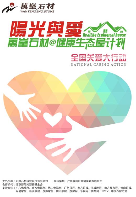陽光與愛,萬峰石材@健康生態屋 全國關愛大行動合天時,占地利,聚人和,必將成為一場萬眾矚目、惠民惠商的建材行業盛事,2015年7月18日,讓我們共同期待,相聚廣州香格里拉酒店新聞發布會現場。