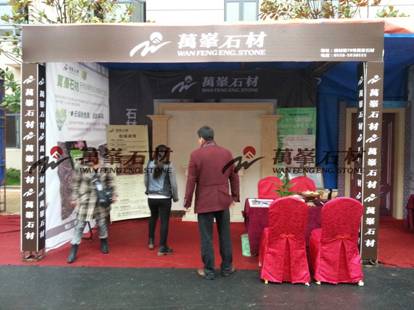 作為本次系列活動的第三步,亳州代理商在有限的展示范圍內,將背景墻、門套線、窗臺板等家裝運用最常見的石材應用一一展現,以最簡單的展示效果達到最大的推廣目的。