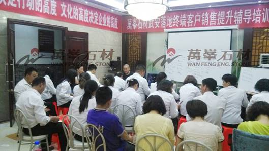 5月27日,石材武安市場專項開展了“銷售提升輔導培訓”,旨在提升武安地區一線銷售人員的綜合能力,為下一步的市場開拓夯實基礎。活動邀請到著名營銷導師鄧煜先生親臨現場,奉獻了一場深入淺出的思想盛宴。