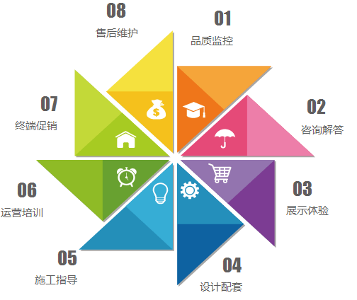 三、提升品牌附加值。這些新價值包括品質監控、咨詢解答、展示體驗、設計配套、施工指導、運營培訓、終端促銷、售后維護等等,涵蓋了消費者接觸品牌到落地實用的整個過程中。