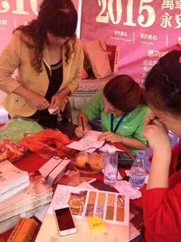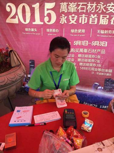 展會從5月1日持續3日,石材店面、店外齊互動,店里精心布置了促銷氛圍,店外在奧體廣場設有專門的促銷展位。店內氣氛濃烈,店外更是人頭攢動,咨詢的業主著實不少,僅店外當場就成交多單,效果顯著。